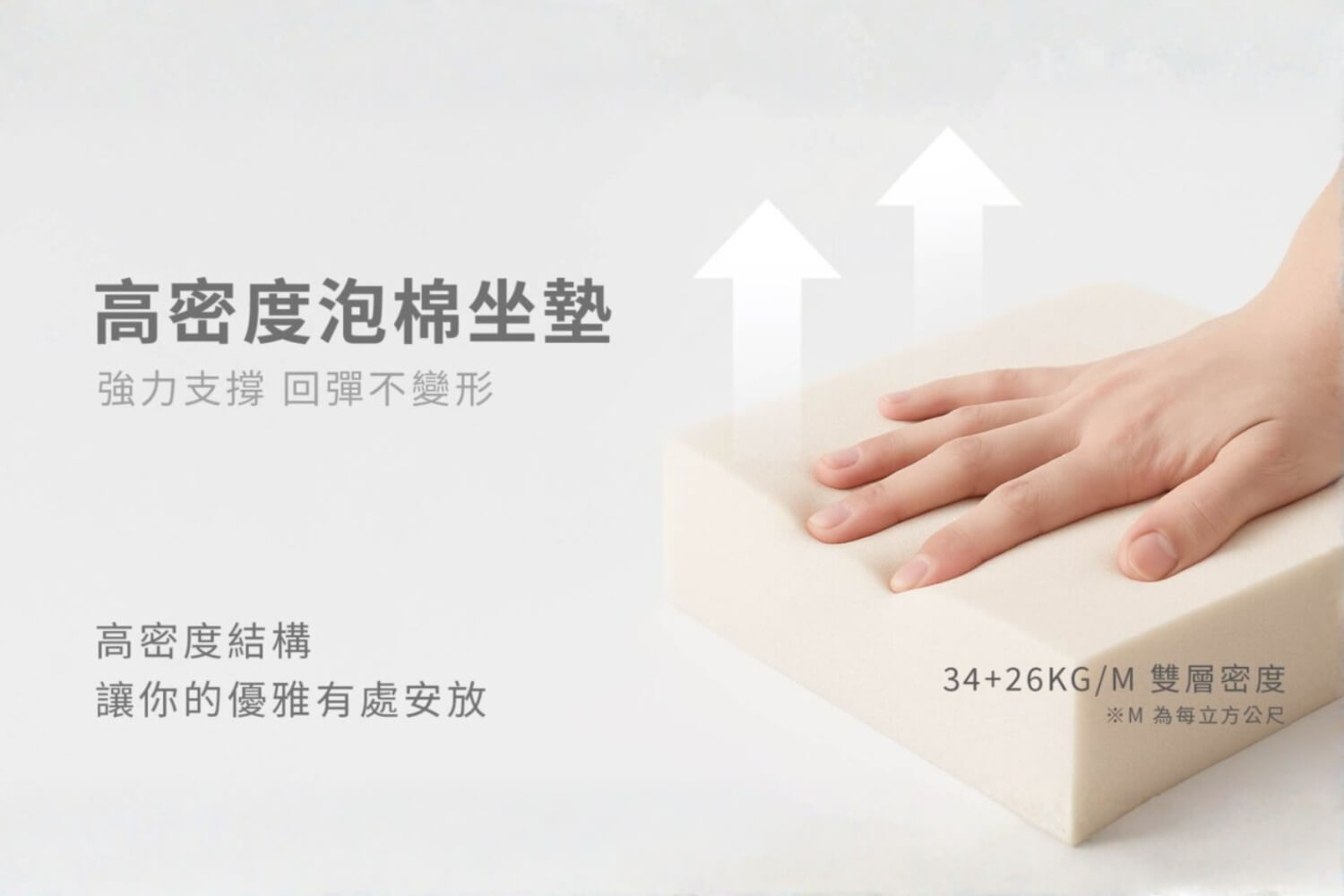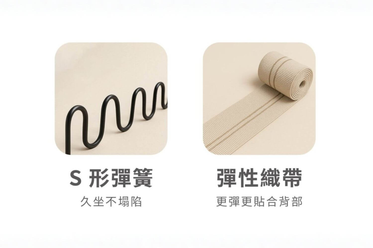 高密度泡棉與S型彈簧結構,久坐不塌陷