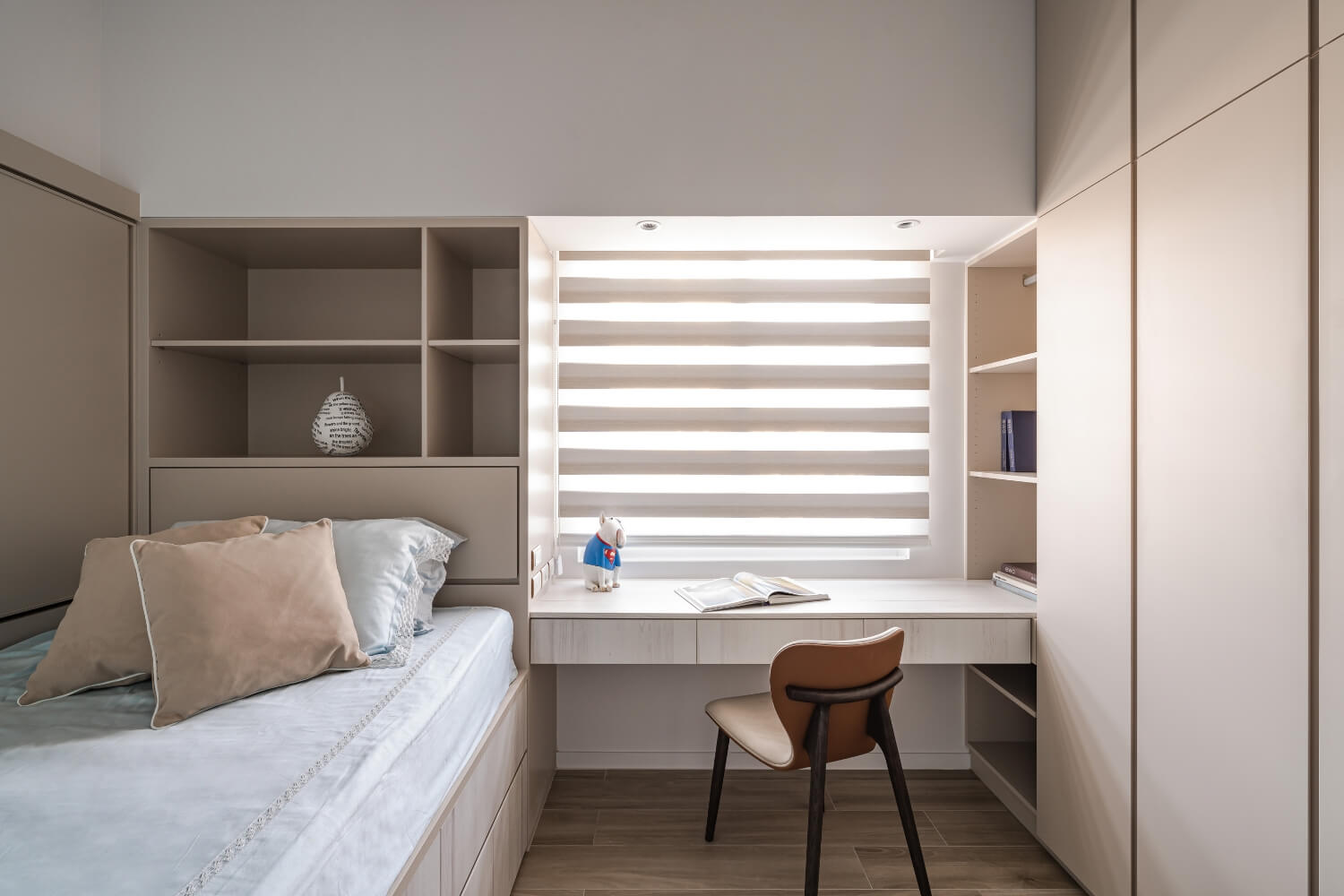 臥室是每個人放鬆與休息的場所,在空間設計上,往往需要兼顧舒適與實用性。而系統家具設計的床頭板、衣櫃與隱藏式收納櫃,能夠有效地利用臥室中的每一寸空間,讓您睡得舒適又安穩。