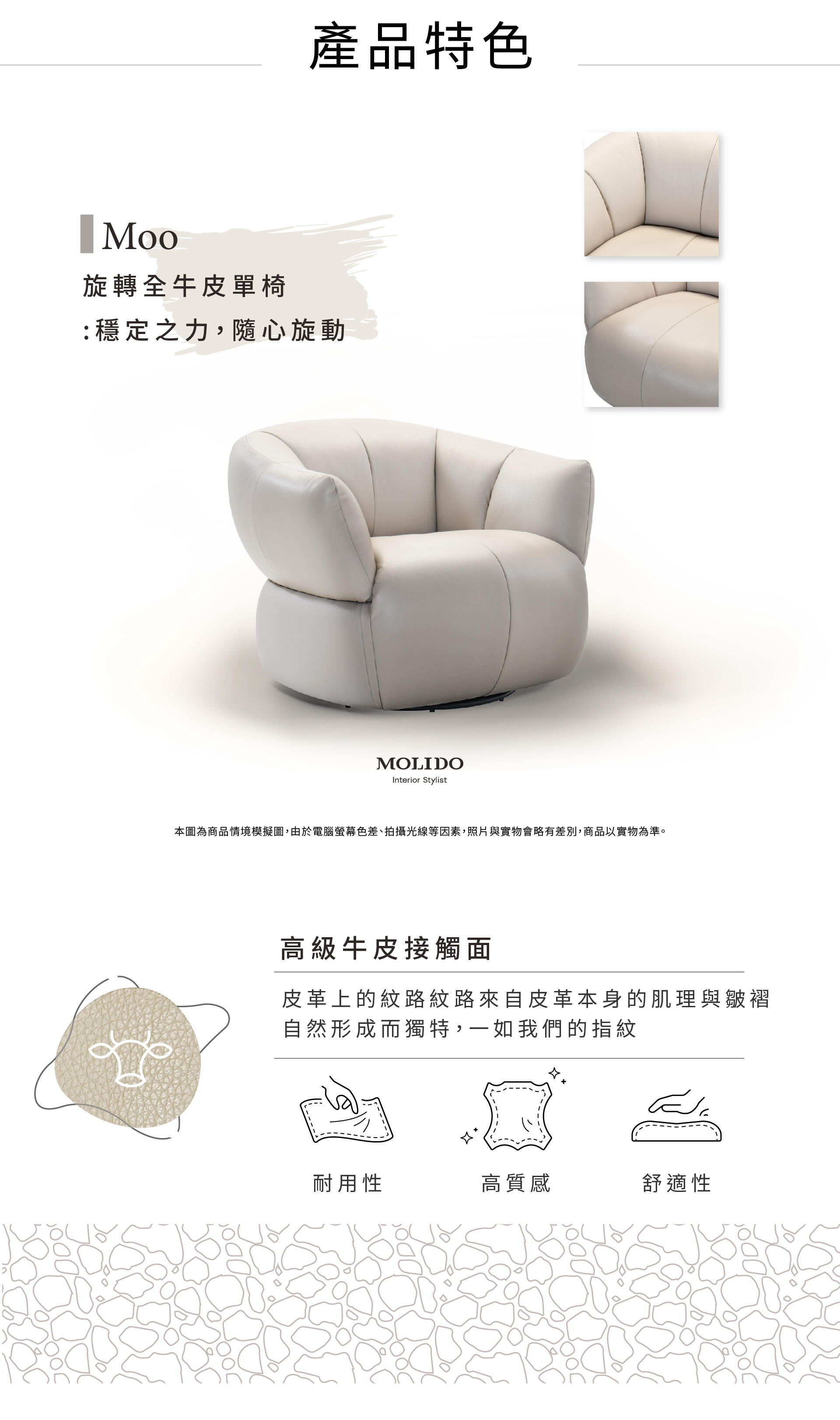 Moo 可旋轉全牛皮單椅-Molido莫里朵家居