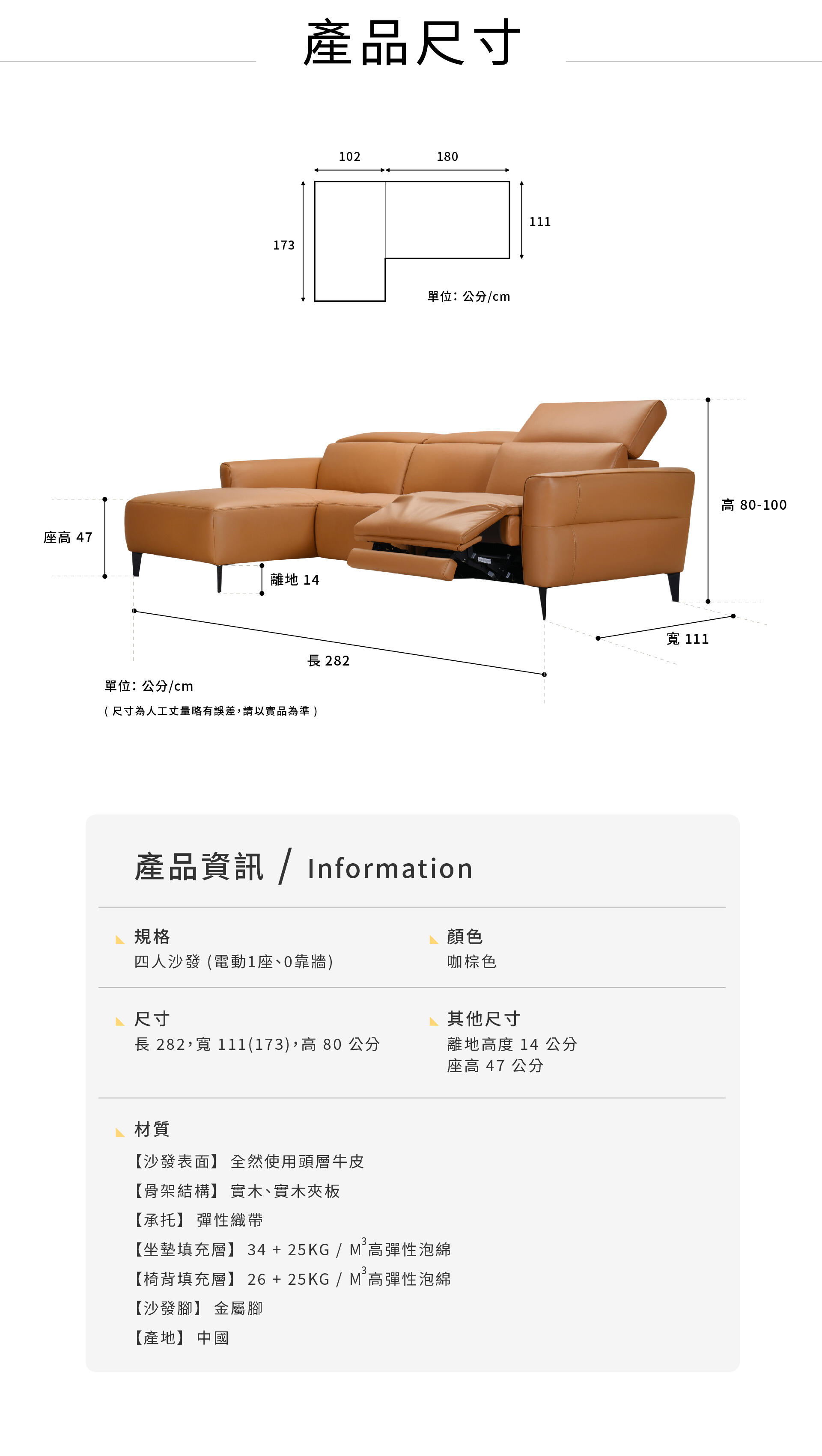 尺寸:282 × 111-173 × 80 公分