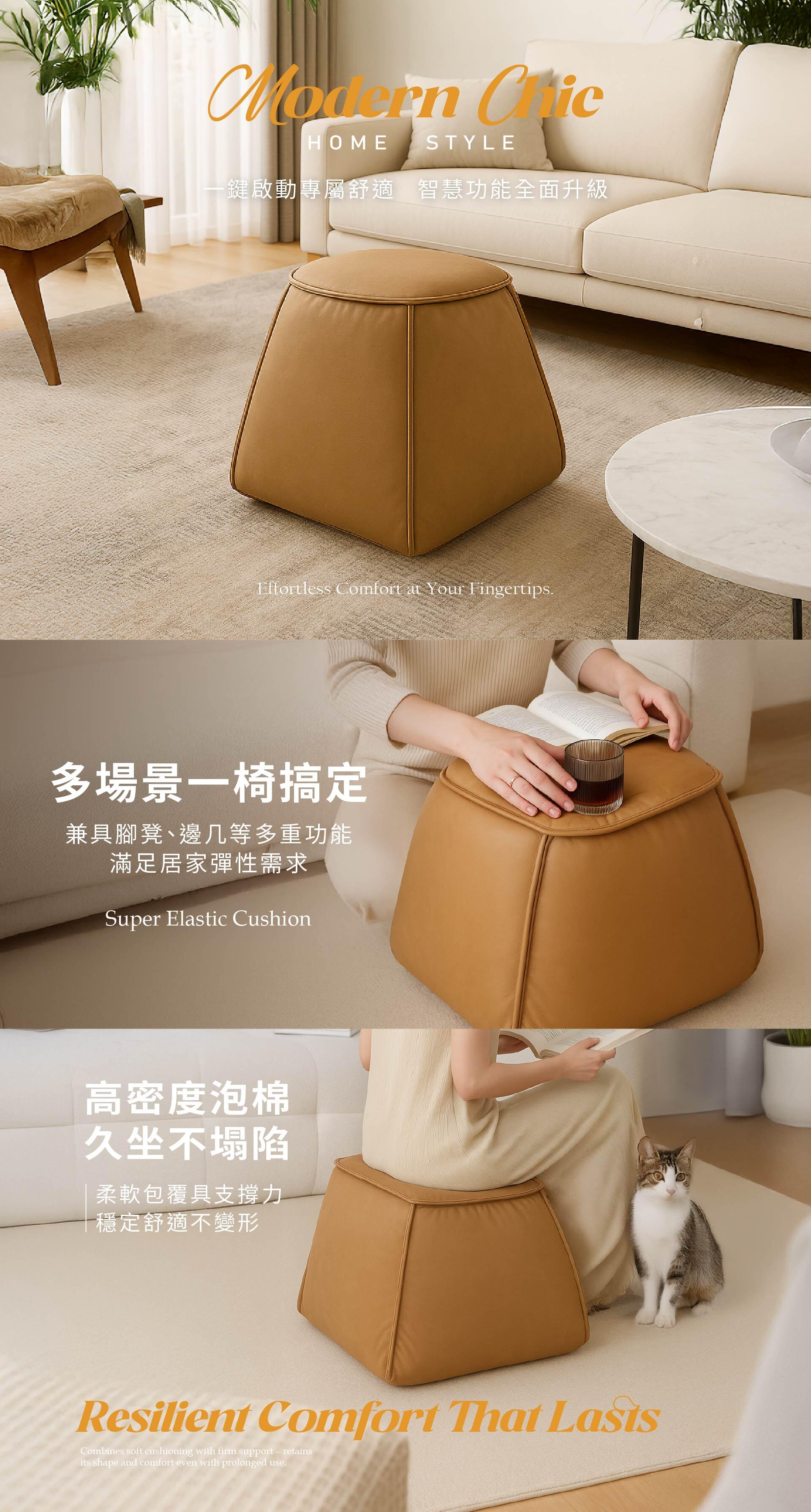 絨布六瓣拼接帶提把圓凳-Molido莫里朵家居