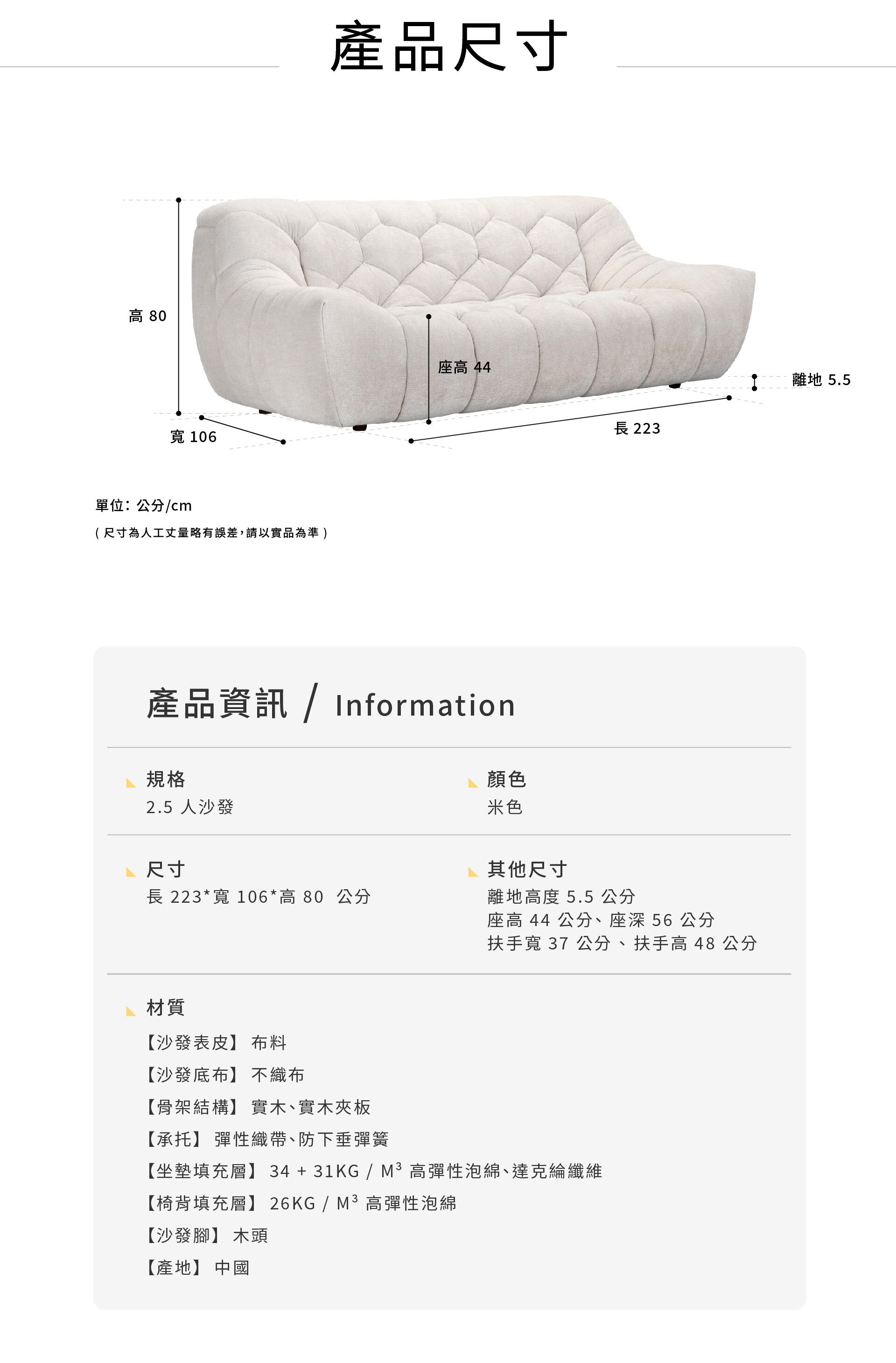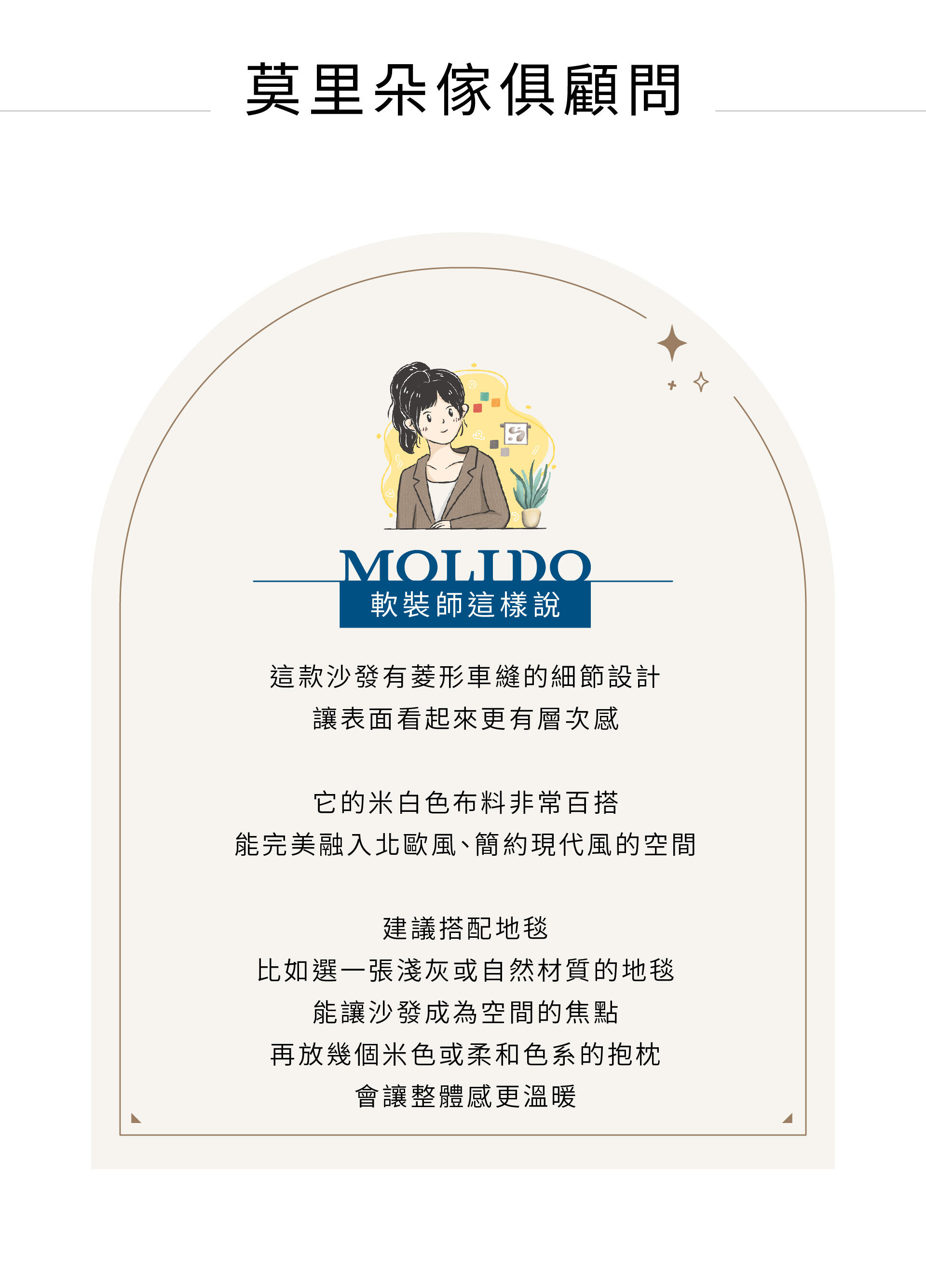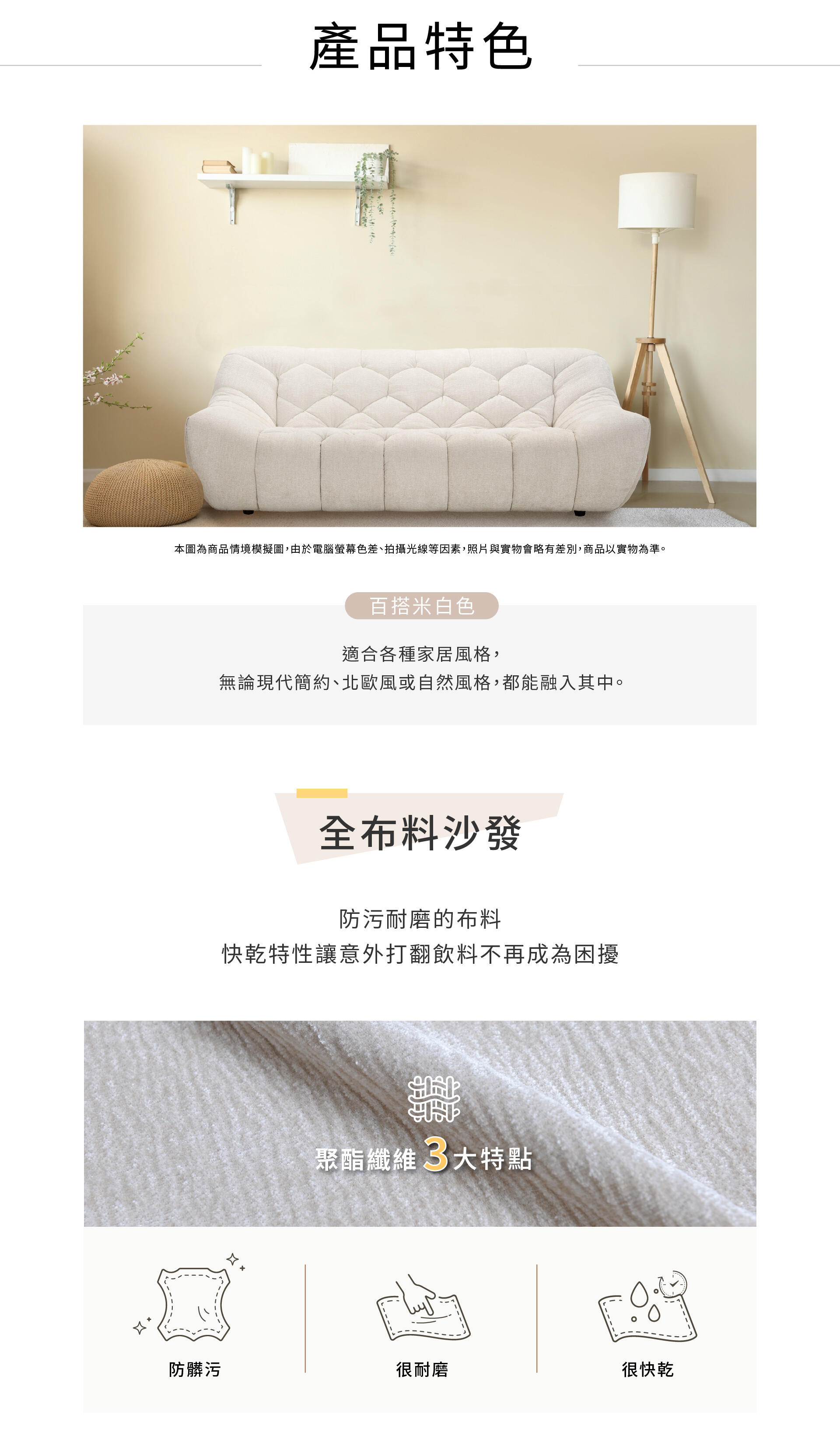百搭色系:米白色布料適合各種家居風格,無論現代簡約、北歐風或自然風格,都能融入其中。